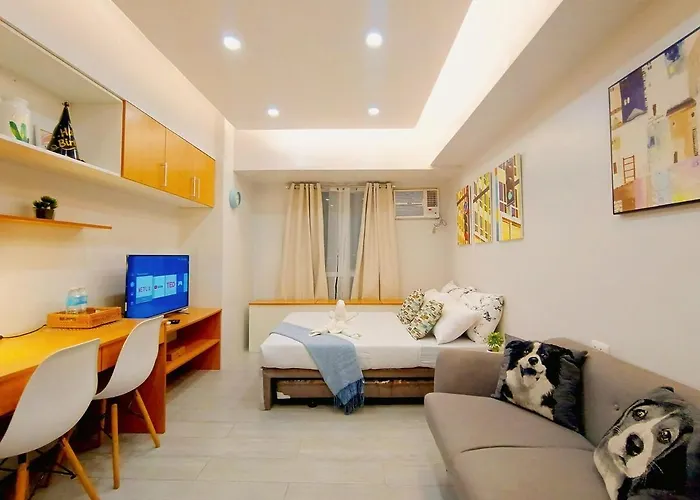 1702T1 Avida Riala It Park Cozy Studio Unit 350Mpbs Speed includes self-catering facilities, such as an equipped kitchenette with an electric kettle, a refrigerator, and kitchenware. The closest bus stop is station to Ayala Mall, which is around 200 metres away. After a day full of activities, relaxing by a swimming pool is a perfect option.